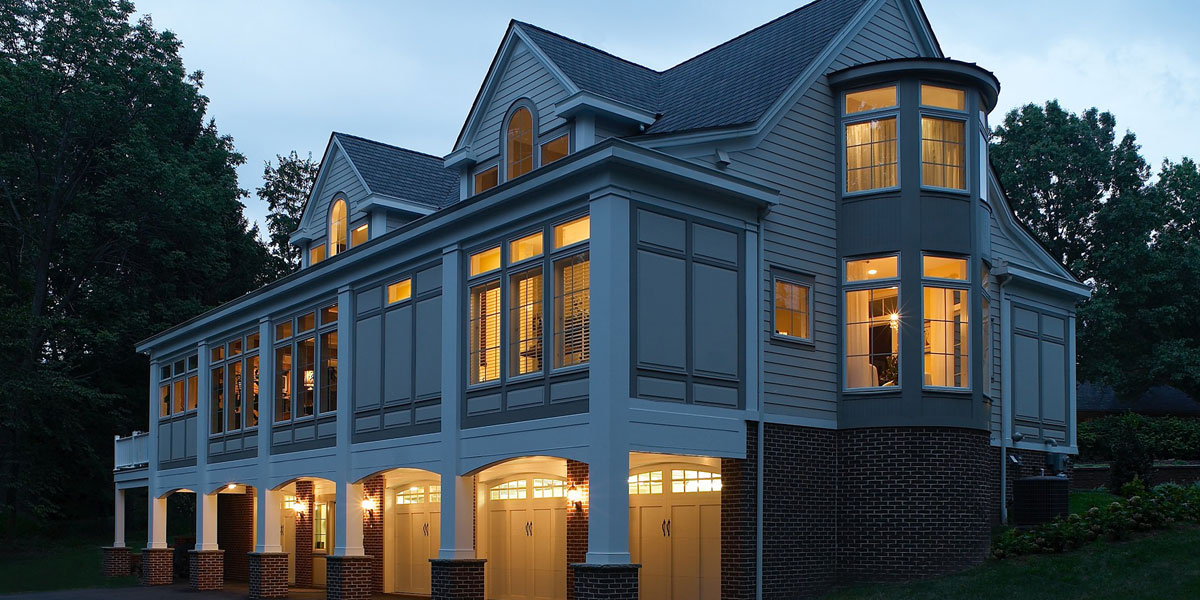 A unique challenge of this new home required creating a retirement cottage while discretely accommodating parking for hearses for the contiguous funeral home business. The design is reminiscent of a carriage house.